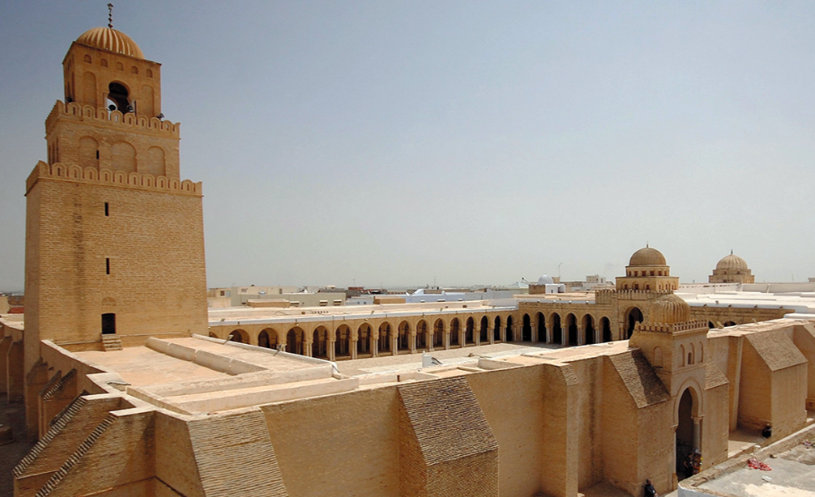 ويعتبر المسجد الجامع بالقيروان من أضخم المساجد في الغرب الإسلامي وتبلغ مساحتهُ الإجمالية حوالي 9700 متر مربع، وبقياس ما يقارب 126 متر طولا و 77 متر عرضا، وحرم الصلاة فيهِ واسع ومساحته كبيرة يستند إلى مئآت الأعمدة الرخامية هذا إلى جانب صحن فسيح الأرجاء تحيط بهِ الأروقة ومع ضخامة مساحته يعد أيضا تحفة معمارية وأحد أروع المعالم الاسلامية.